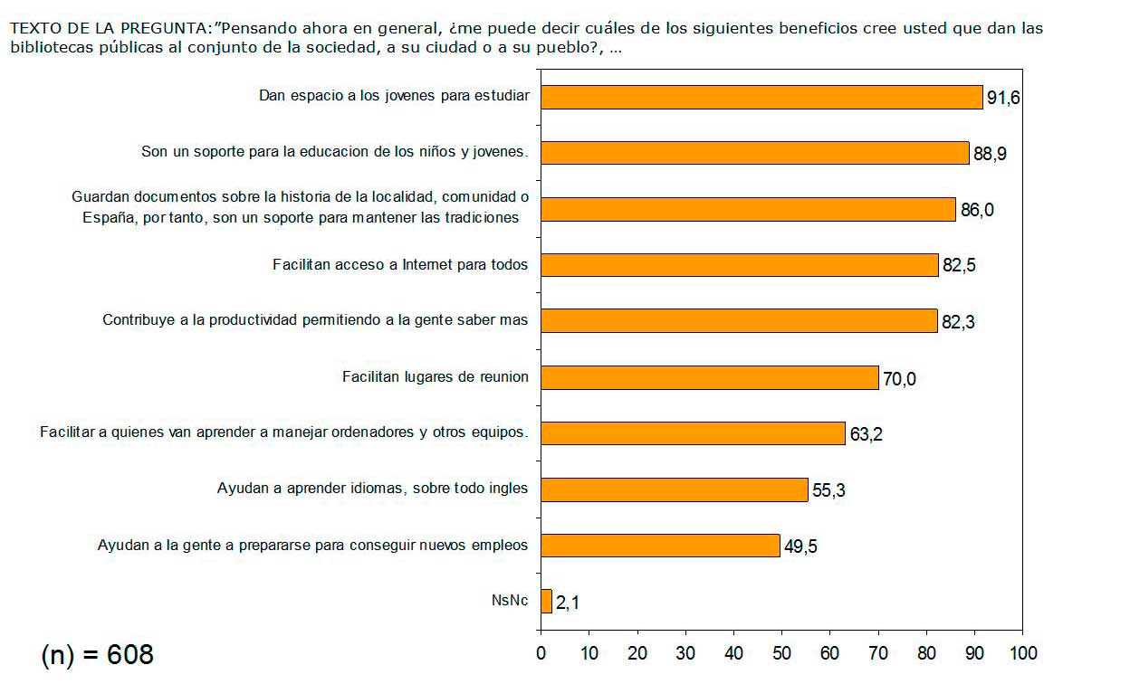 GRÁFICO 7 - Servicios de las bibliotecas públicas al bienestar social (% de no usuarios de las bibliotecas) Fuente: Gómez-Yáñez, 2014 Volver |