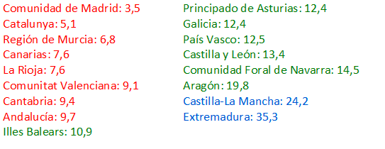 CÁLCULO: Núm. de bibliotecas / Núm. de habitantes por 100.000