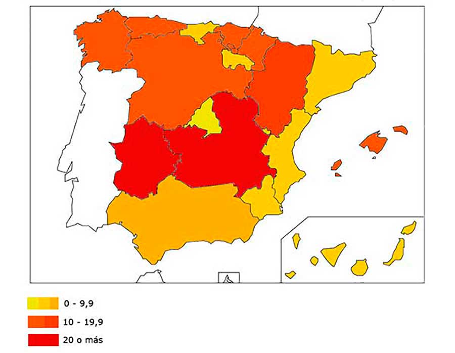 Fuentes: elaboración propia con base en datos de MECD, 2015a y para la población, Expansión |